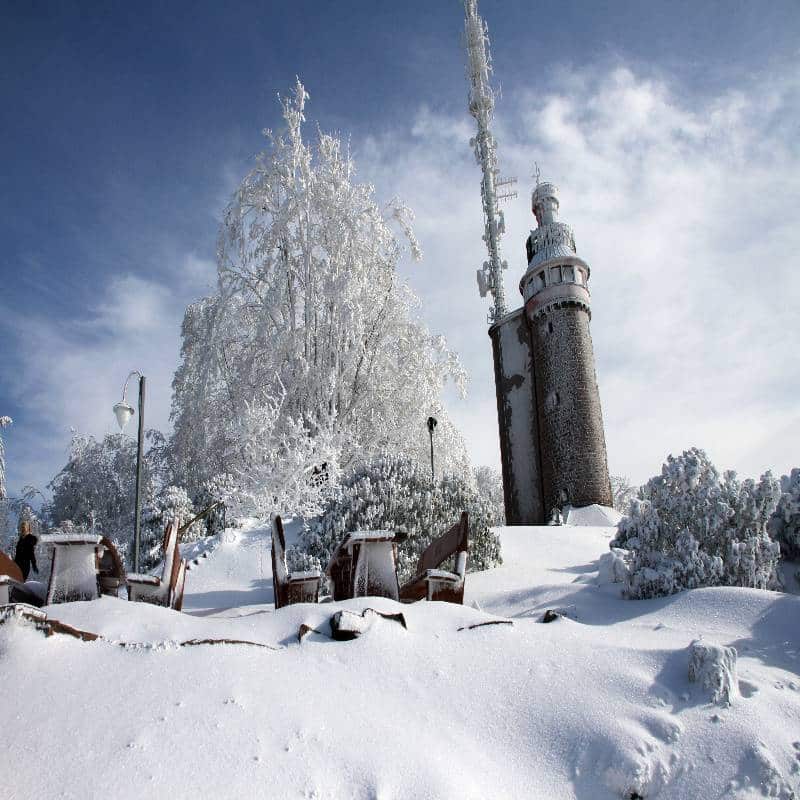 Ride the funicular to the summit for broad views over the Black Forest and the Rhine valley. Short loop trails and a tower add a bit of light movement; sunset up here can be quietly spectacular on a clear day.